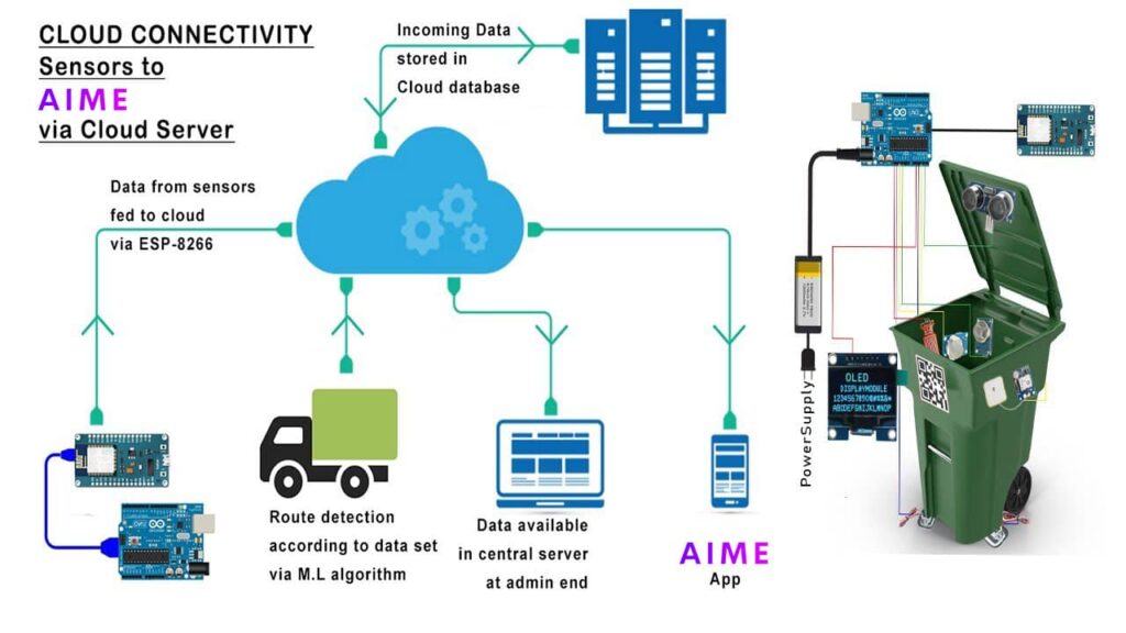 Waste management can be achieved using various technologies and methods, such as landfill, incineration, anaerobic digestion, pyrolysis, gasification, or composting. Garbage management can also be enhanced by using IoT-based smart management systems, which can provide features such as real-time monitoring, data analytics, optimization, and automation.